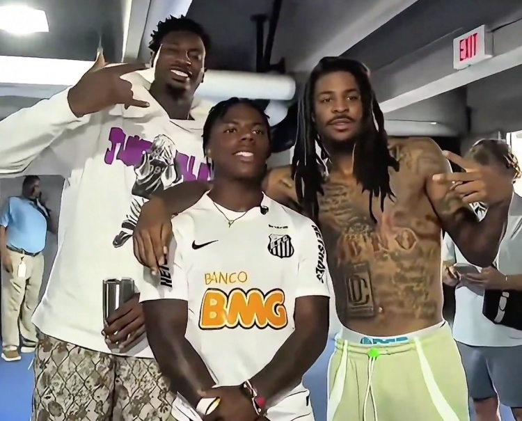 9月12日讯 甲亢哥IShowSpeed直播来到了孟菲斯,在这在孟菲斯和球星小贾伦-杰克逊还有莫兰特相遇,三人同框合影,还真的很难看出谁是粉丝、谁是明星。