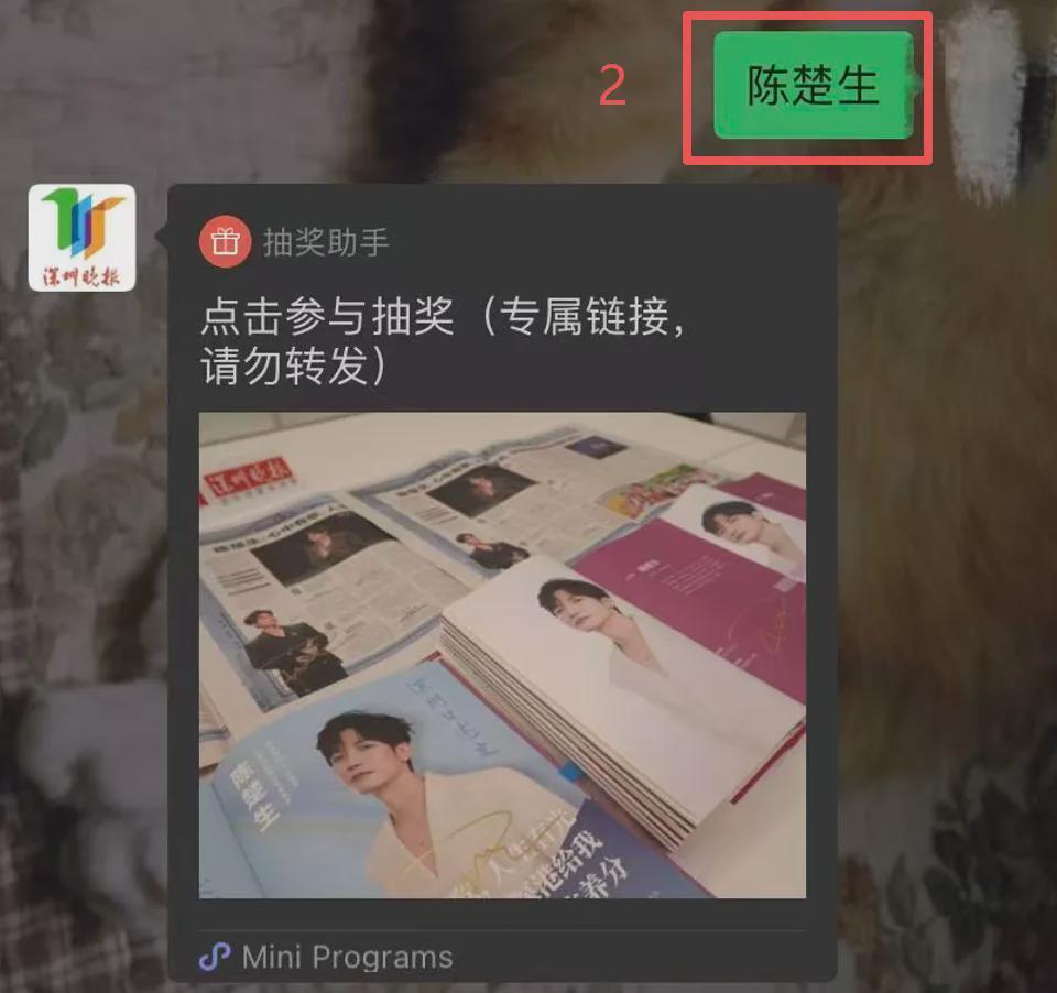 3、在对话框中输入关键词“陈楚生”,获取链接参与抽奖